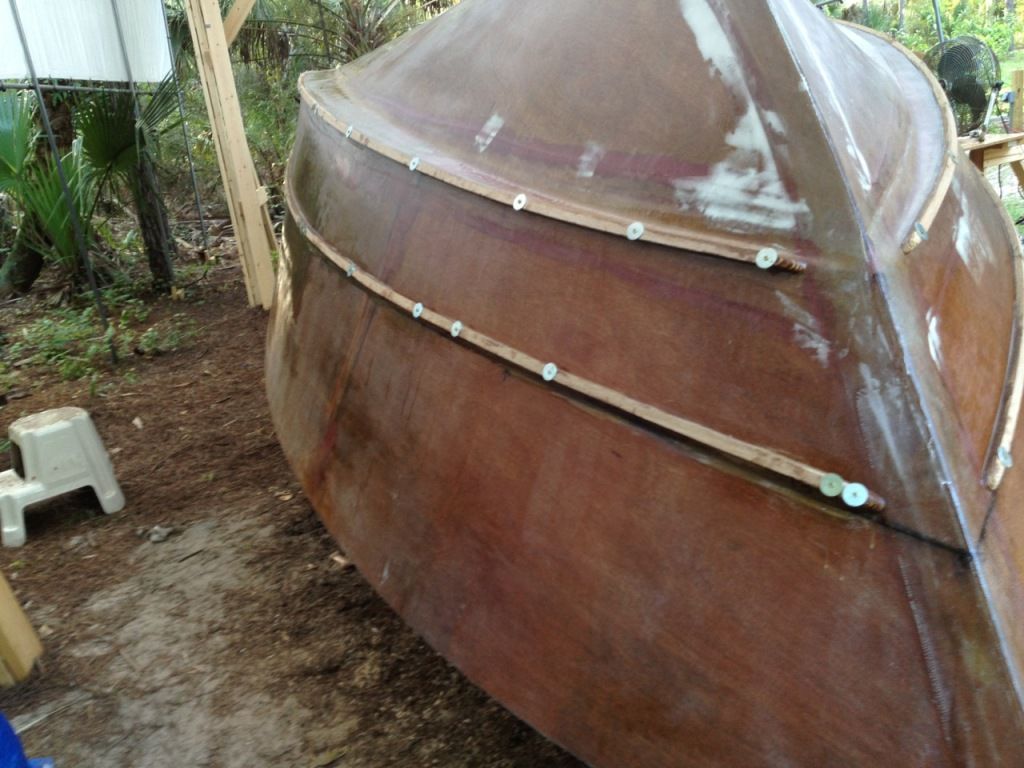 Yesterday I finished sheathing in the entire hull.  2 1/2 months from the start, I am pretty happy with the progress.  I will take some pictures of the hull later today and post.